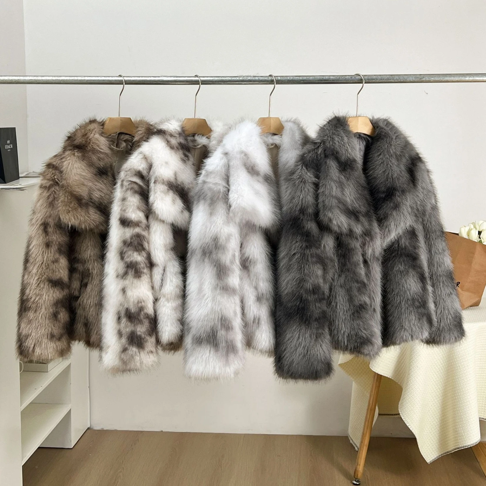 2026 Chic Leopard Print Big Collar Oversized Fluffy Faux Fur Coat Woman Clothing Winter Furry Jacket Fox Fur Faux Coat
